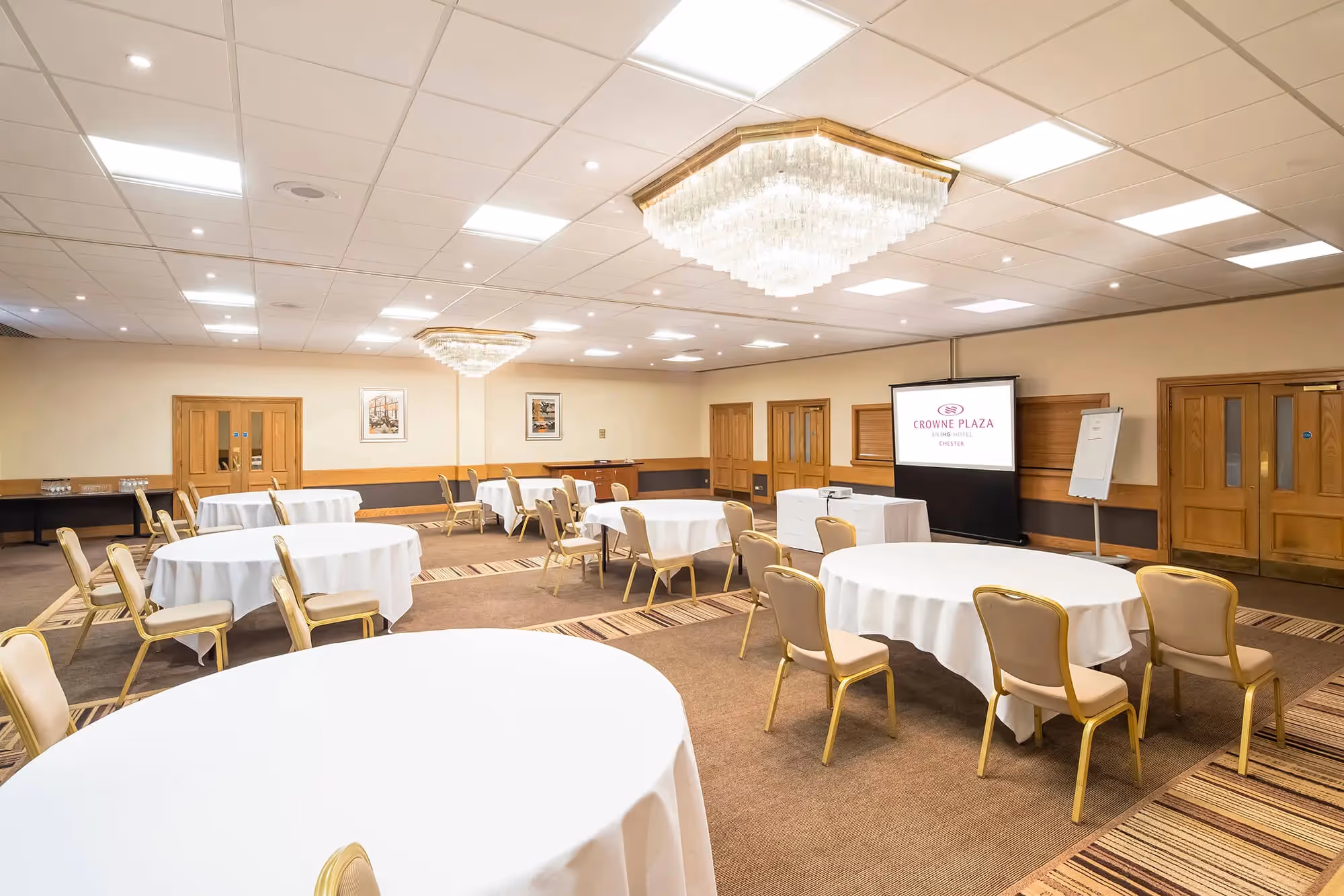 The hotel, located in the city centre, with panoramic views of the city and Welsh hills offers great access for tourists visiting all the historic sites of Chester. The hotel offers a luxury spa, complete with treatments, a pool, jacuzzi and a fitness centre. There are multiple dining options and 11 meeting rooms, the largest of which has a capacity of 600.